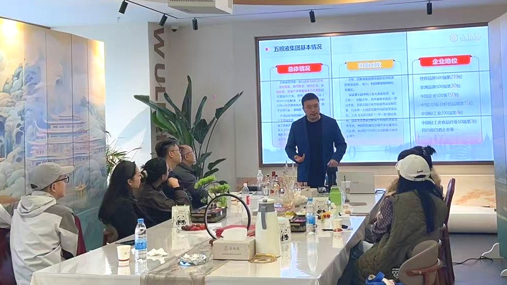 活动在沉浸式文化导览中启动,学员们沿着体验馆“历史溯源-匠心工艺-品鉴体验”的核心动线,系统探访了五粮液跨越千年的发展历程。