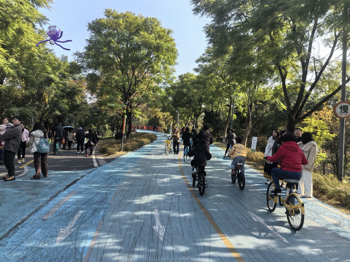 下午的绿道起点,精神饱满的MBA学子们整装待发。在充分热身之后,他们踏上自行车,开启了一段充满乐趣与挑战的绿道骑行旅程。蜿蜒的绿道如绿色绸带,串联起城市的生机盎然。学子们穿梭于林荫之间,呼吸清新空气,尽览蓉城独特的自然风光。