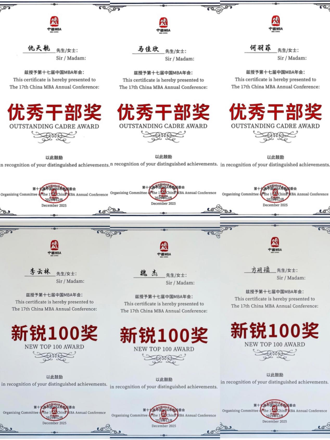 2025 年中国 MBA 优秀干部奖(仇天航、何羽菲、马佳欣)